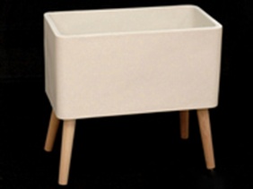 3. Горшок керамический на деревянных ножках FG-TG54487-1, белый