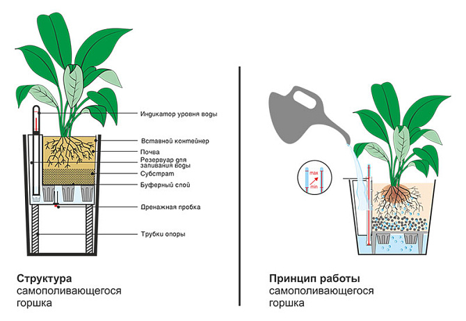 • Конструкция горшка: Самополивающийся